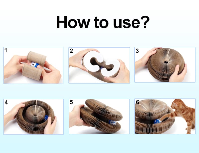 High-quality corrugated paper production, pet cats play without hurting paws Product folding can change a variety of shapes of toys, new and interesting Pet cats are toggled when they play, and the toys are changed into waves to attract cats. Specifications: Material: Corrugated Cardboard