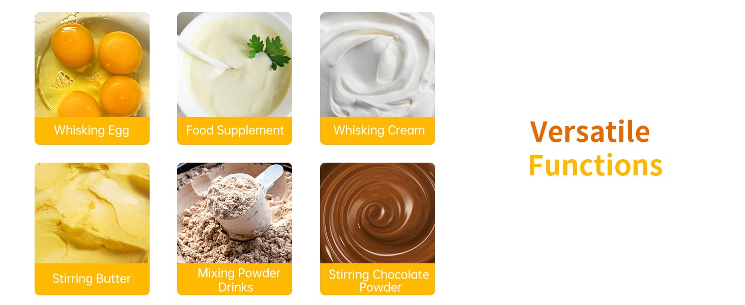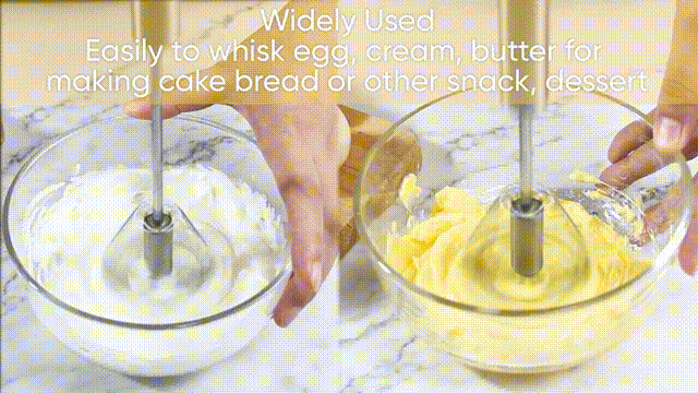 A: This semi-automatic stick whisk is suitable for almost all ingredients that need to be whisked, such as eggs, flour, cream, chocolate, etc. It can be whisked and mixed quickly, which is perfect for baking and cooking.