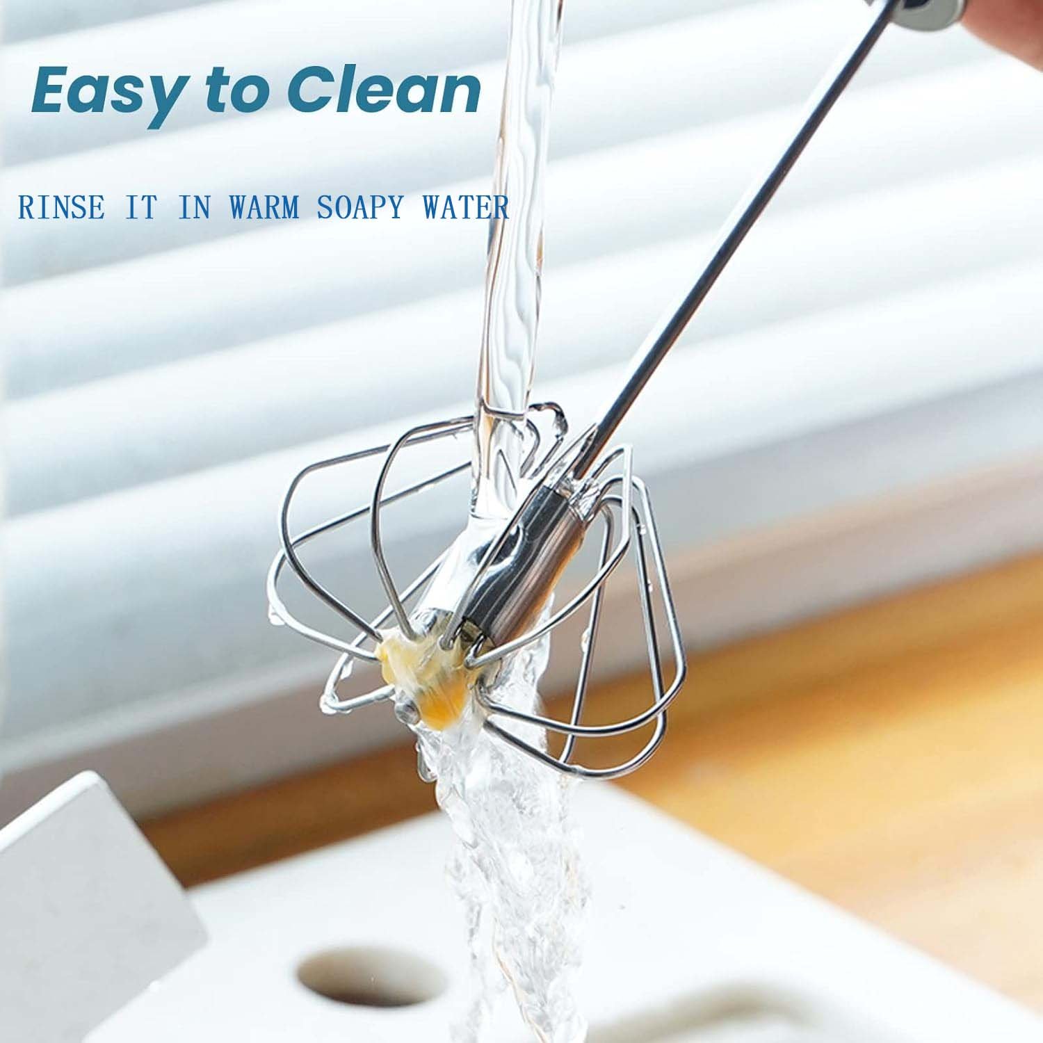 Stainless steel material ensures the whisk very easy to clean. Just rinse it in warm soapy water or throw it into the dishwasher.
